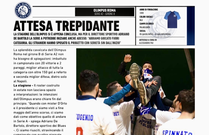 Leggi tuttoIncontro tra Andrea Verde, proprietario dell’Olimpus Roma, e Fabrizio Loffreda, presidente della Lega Calcio a 8, all’Olgiata 20.12 Sport Club, la Casa dei Blues nel prossimo campionato...