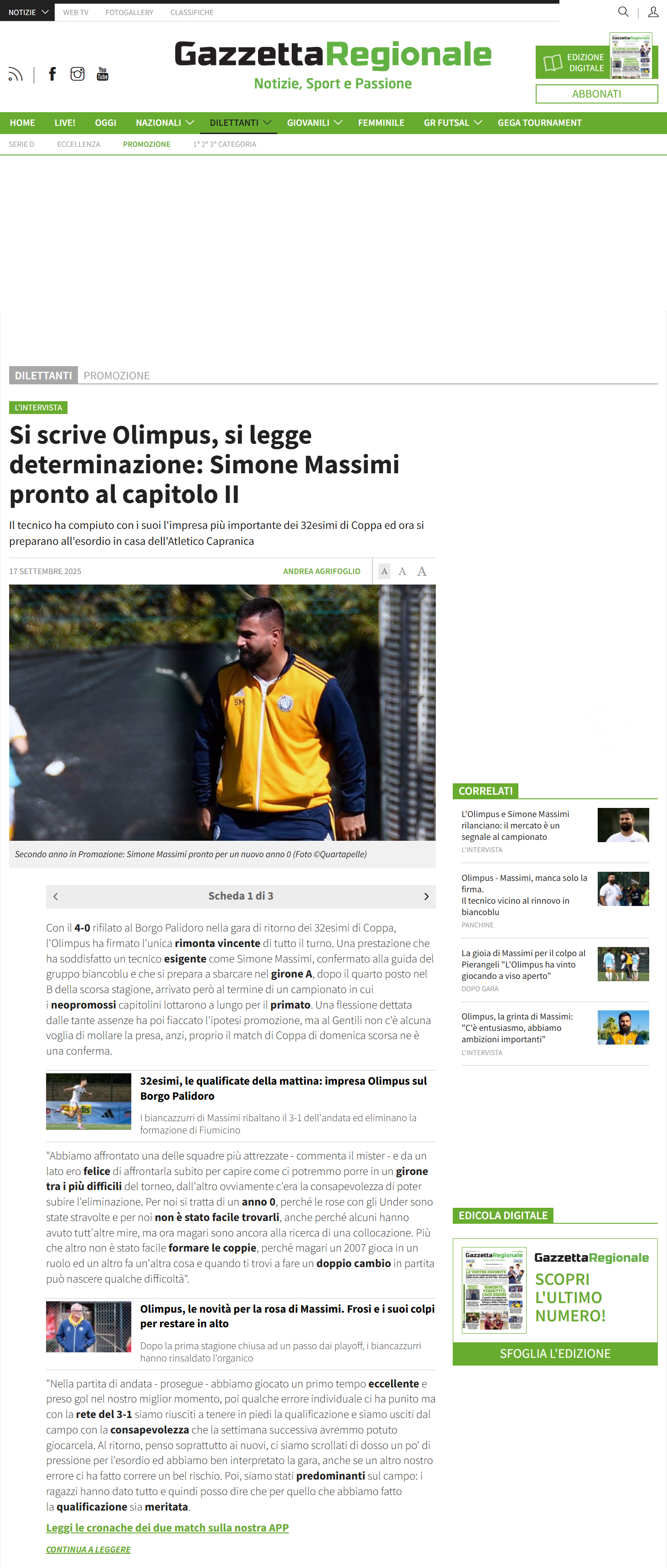 L'intervista al Mister Simone Massimi su Gazzetta Regionale